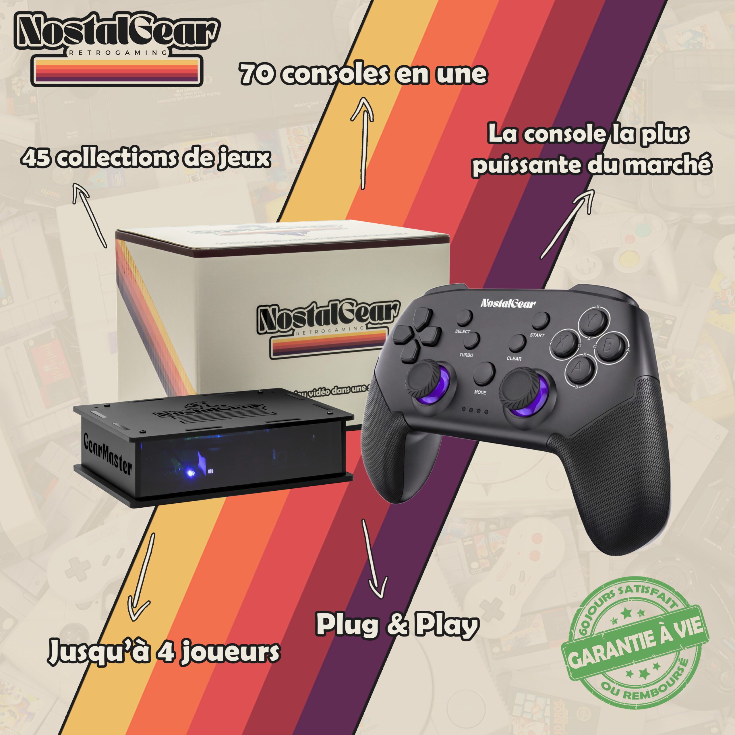 Et vous avez raison ! La GearMaster est un véritable portail pour voyager dans le temps. Avec plus de 20 000 jeux emblématiques sur 70 consoles légendaires (Sega Megadrive, PS1, PSP, Dreamcast, et systèmes d’Arcade, etc.), elle offre une expérience retrogaming authentique compatible avec tous les écrans HDMI.